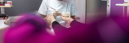 Master chiropody removes the cuticle. Spa. Concept body care.