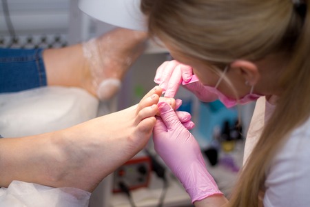 Toenail treatment, pedicure concept, clean toenails, hygiene of toenails