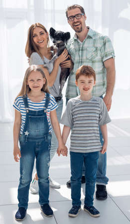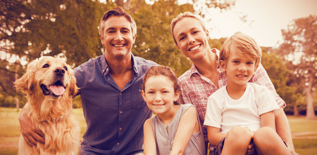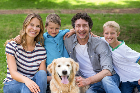 portrait of a happy family with a pet