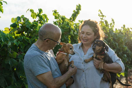 Portrait of a couple with their dogs