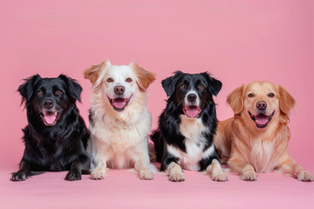 Group of funny dogs on a pink background