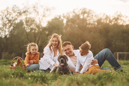 Cute dog. Family have weekend outdoors at summertime together.