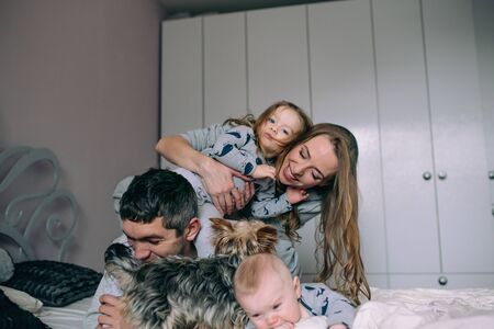 Family playing on bed in the bedroom