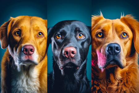 collage from portraits of three cute dogs. generative AI.