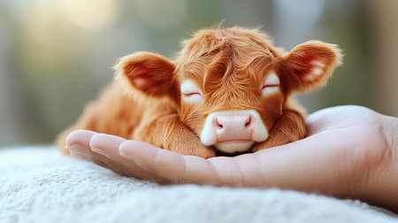 A young calf sleeps soundly in a tender embrace, radiating innocence and serenity.