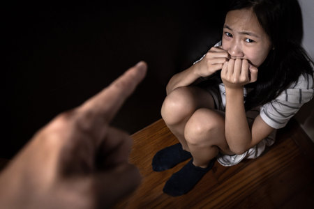 Violence in the family - frightened and sad girl