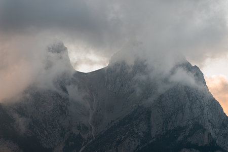 Mountains in the fog, Dolomites, South Tyrol, Italy