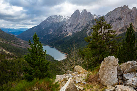 Els Encantats flowed in Estany de Sant Maurici in Espot in Spain