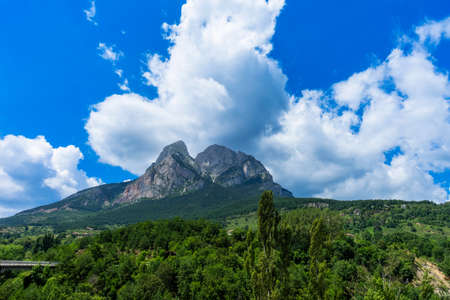 beautiful shot of the magical pedra forca mountain in spain, with perfect summer clouds
