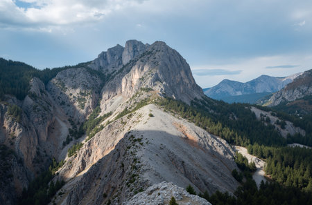 Beautiful Turkish mountains on a background of cloudy sky. Peak. Climbing in Turkey.