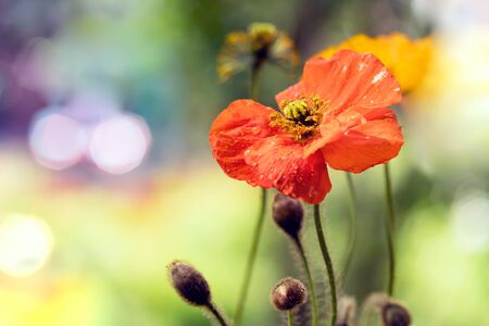 Wild poppy flower at sunset. Symbol of Remembrance Day.