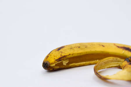 Close up yellow banana peel isolated on white background