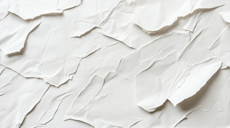 Old white grunge ripped torn collage posters creased crumpled paper placard texture background with copy space for text or image