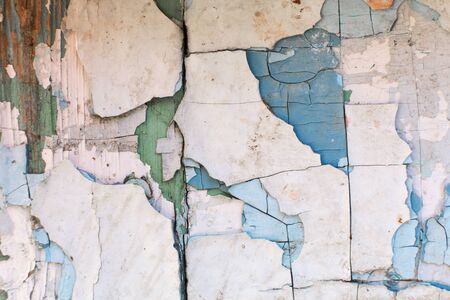 Old dirty painted wall. Several layers of peeling paint. background texture. Horizontal