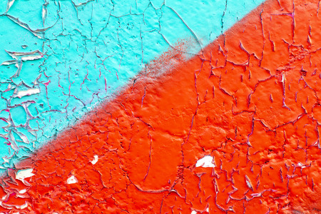 Colorful painted wall with peeling paint, cracks on the wall