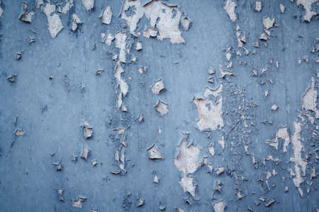 Texture paint old, peeled off pieces from wall, blue background. Concept solar radiation, corrosion.