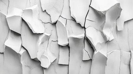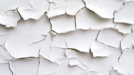Explore this detailed close-up of cracked white paint on a wall. This image captures the beauty of aging surfaces, highlighting their unique textures and patterns.