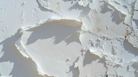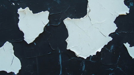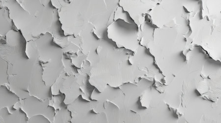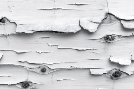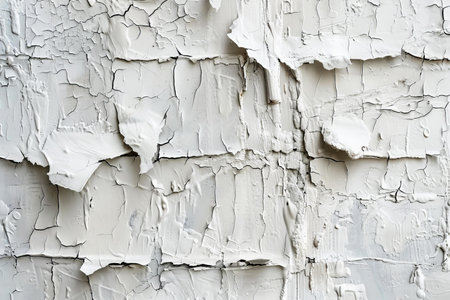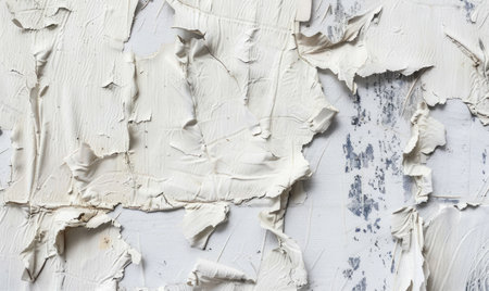 A closeup image showcasing the aesthetic appeal of peeling white paint on a textured surface. Ideal for creative projects, backgrounds, or design elements.