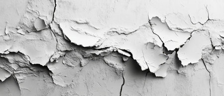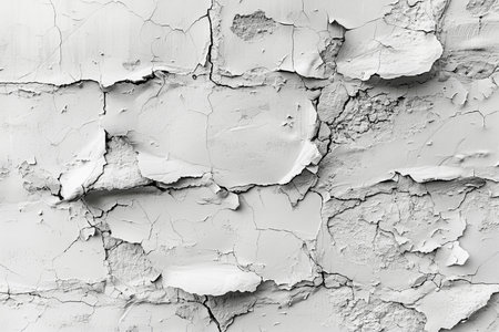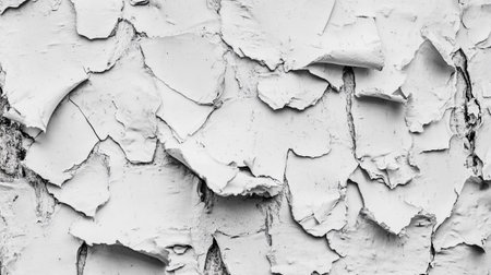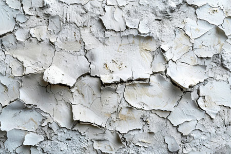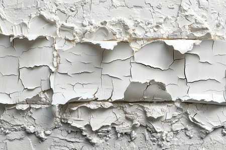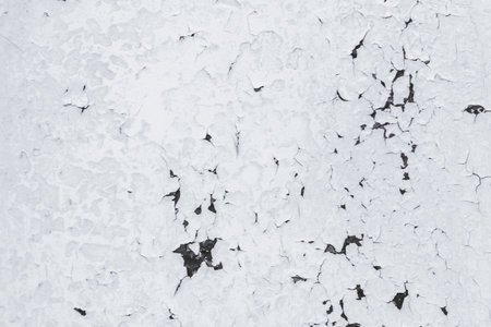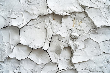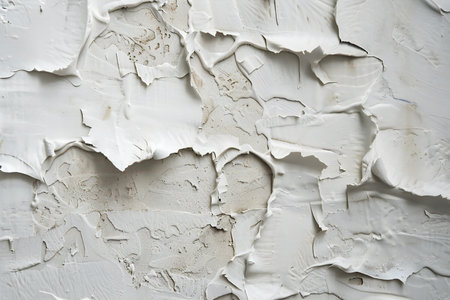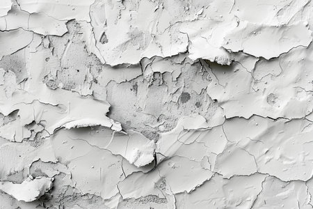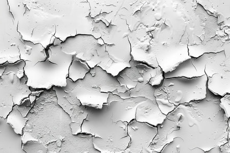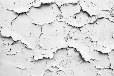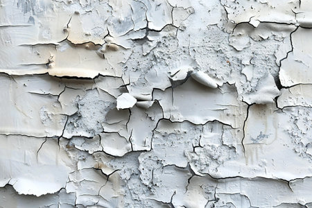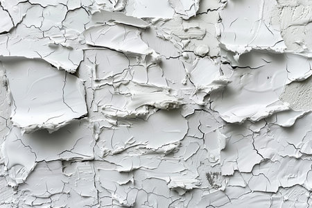 Cracked paint and peeling textures revealing layers of white in a weathered surface