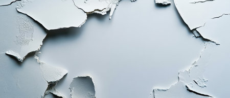 Cracked white wall showing peeling paint in an old building during daylight, highlighting wear and neglect over time. Generative AI