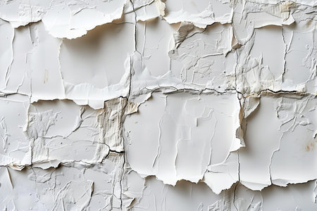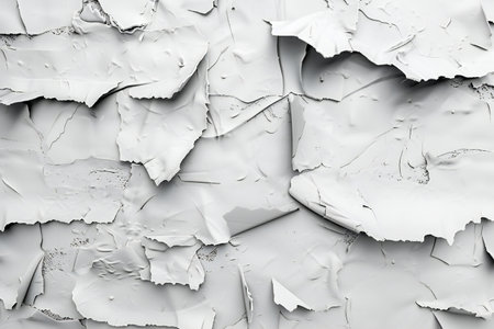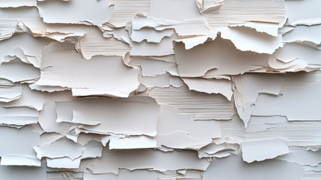 A high-resolution image showcasing textured layers of torn white paper, creating an abstract background. Ideal for design projects, arts, and crafts.