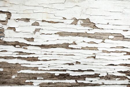 The texture of peeling white paint on the wall. Cracked painting of the old surface. Background of plaster peeling from the wall.
