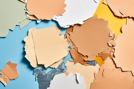 Background with detail of torn paper in pastel colors and texture. Ai generated.