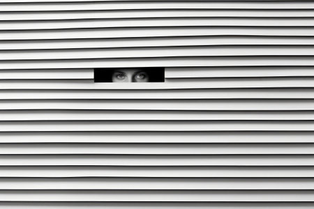 girl looks at you through the blinds, close up