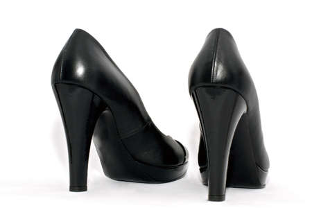 Black high-heeled shoes. Womens shoes with heels. A pair of womens Black patent leather shoes on a white background