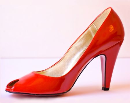 Fashion and footwear. Red high heel classic shoes outdoor during sunny day.