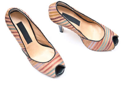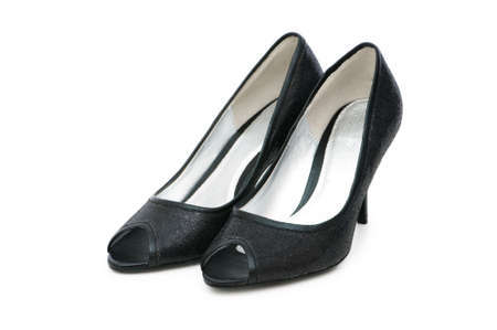 Black suede high-heeled shoes isolated on white background. place for text. concept of fashion, style.