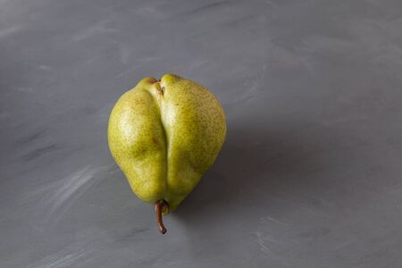 Ugly fruit. Fancy ripe pear, on a gray background, copy space.
