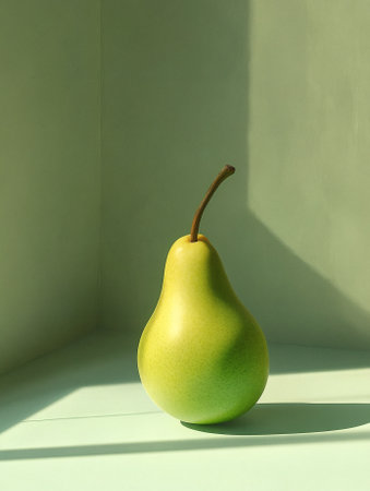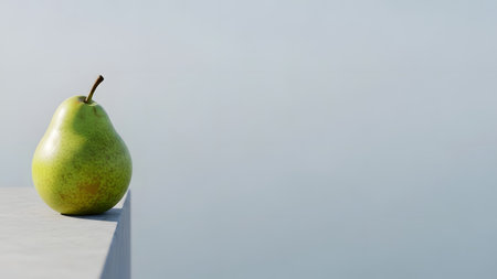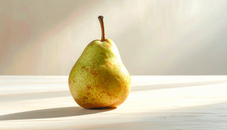 Single pear casting shadow on a plain surface displays its vibrant colors and appealing shape Great for healthy eating or cooking related designs.