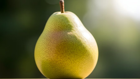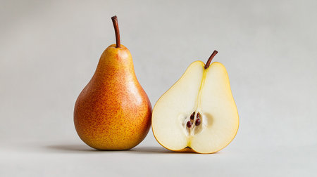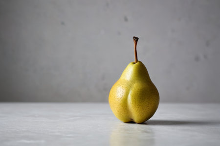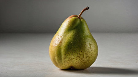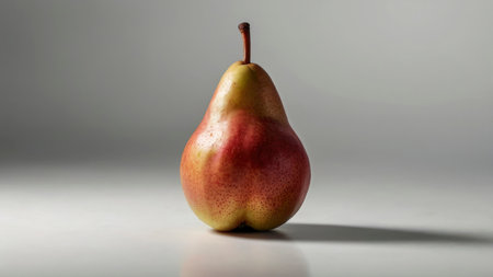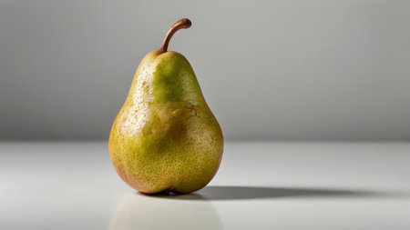 Single ripe pear showcases its natural textures and colors against a clean, neutral background ideal for food and health content.