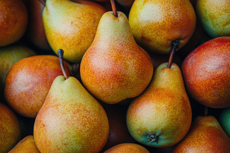 Bountiful harvest of ripe, juicy pears is piled high, showcasing the vibrant colors and textures of nature's bounty