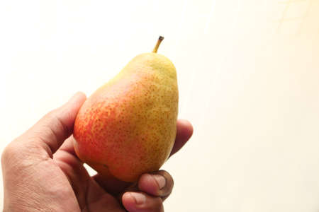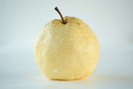 Ripe pear on white background. The cultivation of the pear in cool temperate climates extends to the remotest antiquity, and there is evidence of its use as a food since prehistoric times.