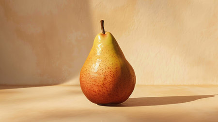 Ripe pear on a warm beige background, minimal studio shot. Nature and healthy eating concept.