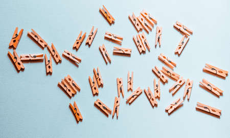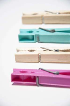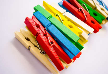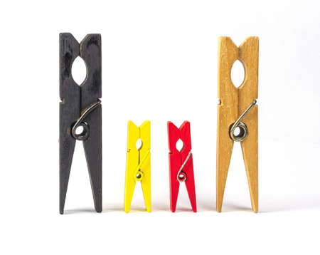 The wooden multicolored clothespins are as sign for tolerance family and society in the white isolated background.