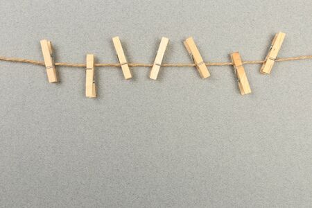 Clothes pins on a clothes line rope holding nothing. Space for you text.