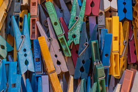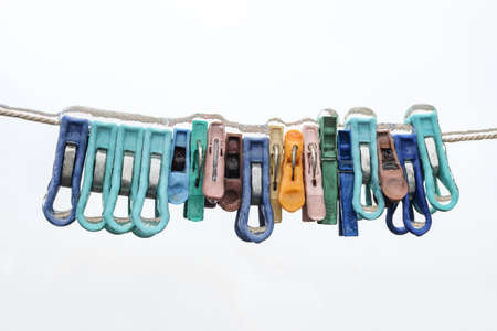 Clips for drying clothes indoors and outdoors. Holders wet cloth
