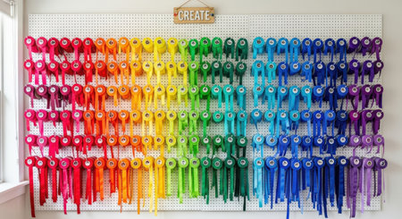 A vibrant image showcasing a well-organized workshop wall filled with various hand tools arranged on a pegboard, highlighting creativity and productivity.