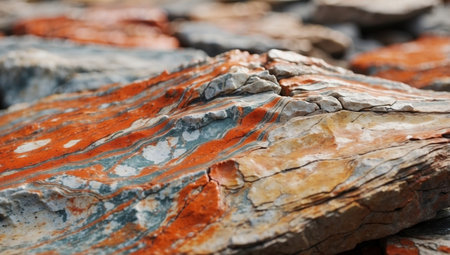 close-up of volcanic rocks and minerals, created with generative ai