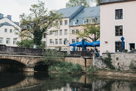 Luxembourg City,Luxembourg - May 19, 2019: Bridge over river Alzette in Luxembourg, the capital of the small European nation of the same name famed for its ruins of medieval fortifications.