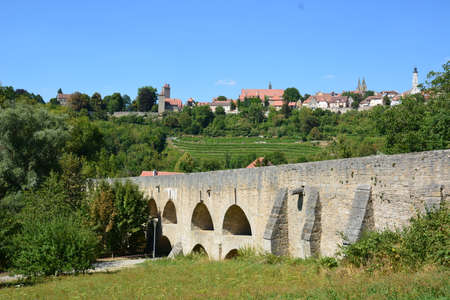 Bridge over the moat, Rothenburg ob der Tauber, Medieval old town, Franconia region, Bavaria, Germany