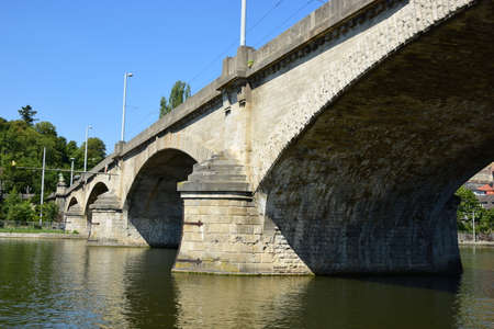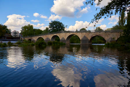 Beautiful old bridge over a calm river on a Sunny day