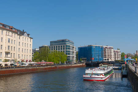 Berlin Germany - April 20. 2018: Canal tour boat sailing in the Spree river