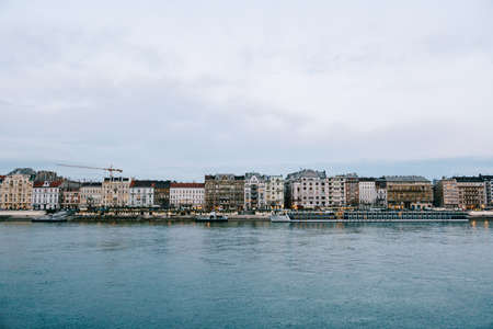 Panorama of the buildings of Budapest by the Danube River to the old buildings on the other side