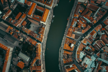wideangle aerial sunset drone photo of the old city Kopenick Berlin, Germany where the rivers Dahme and Spree connect
