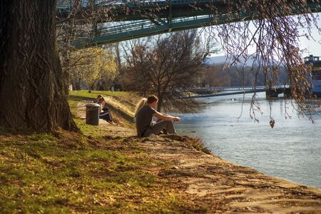 VIENNA, AUSTRIA - APRIL 25: People are relaying at the beach of the Danuvia canal in Vienna on the first bright warm day of the year on April, 25,2009 in Vienna, Austria.