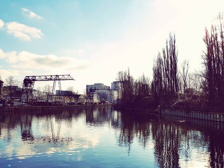 VIENNA, AUSTRIA, FEBRUARY 2, 2016: People are enjoying a sunny day of waterfront of the donau channel in Vienna, Austria.